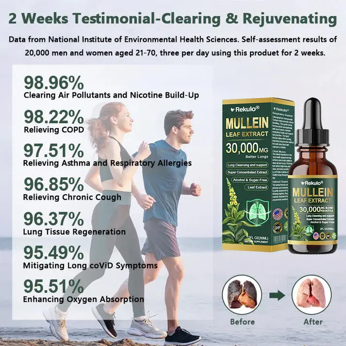 ใProfessionalใ Organic Lung Cleansing Mullein Leaf Extract Drops – Cleans trachea and lung residues – Repairs alveoli – Regenerates tracheal tissue – Combats allergies/asthma – Regains breathing smoothness – Assists in the treatment of chronic obstructive pulmonary disease (COPD)