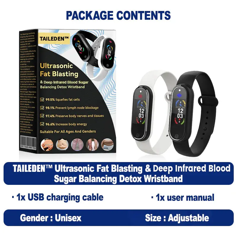 Theย TAILEDENโข Ultrasonic Fat Blasting & Deep Infrared Blood Sugar Balancing Detox Wristbandย combines advanced ultrasonic and deep-infrared technologies to deliver a comprehensive health management solution.