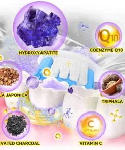 This powerful formula combines hydroxyapatite with effective natural ingredients to address a variety of dental issues including pain relief, plaque removal, tooth growth stimulation, cavity prevention, teeth whitening, and mouth ulcer relief.