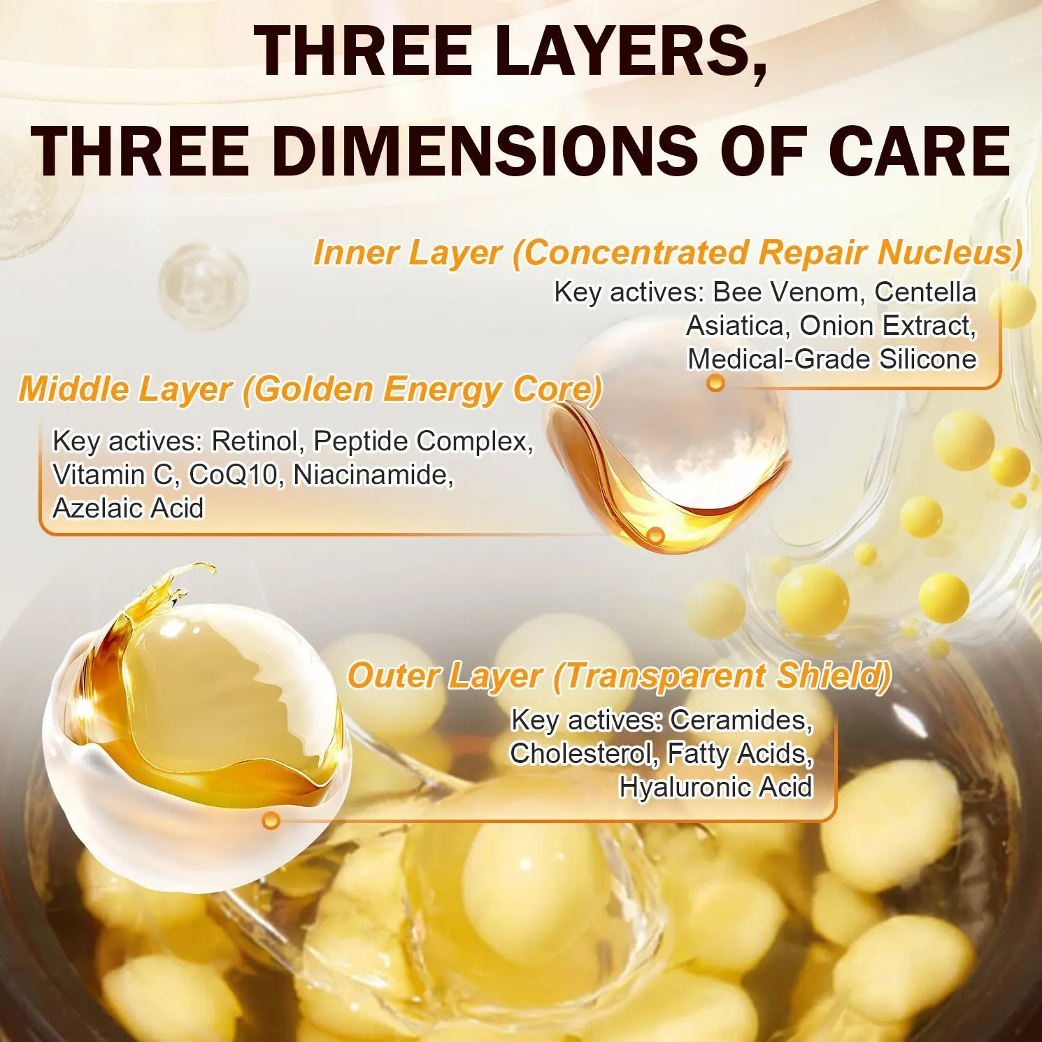 Three layers, three dimensions of care โ scientifically encapsulated, precisely delivered.