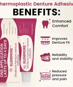 Experience a new standard of denture comfort and confidence with KLENIMORE™ UltraBond Premium Denture Adhesive. Powered by advanced ThermoBond heat-activated technology, it forms a personalized, secure seal that adapts perfectly to your gums — providing up to 4 days of slip-free hold. Enjoy every meal, every conversation, and every smile knowing your dentures stay perfectly in place — comfortably and naturally.