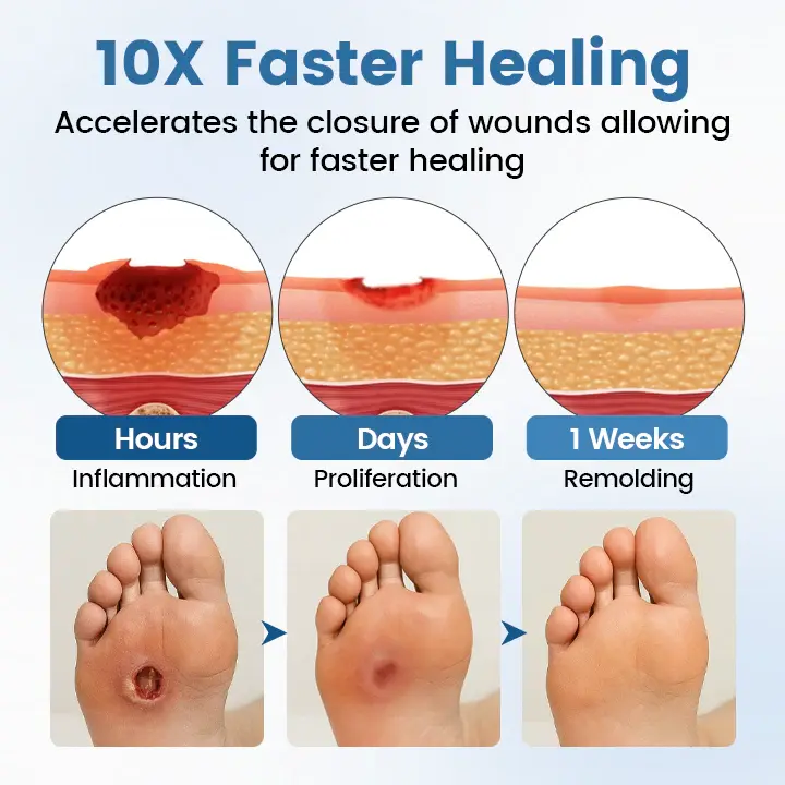 From stubborn ulcers to chronic dryness, our next-generation formula works on every level of diabetic skin care. It speeds up tissue regeneration by 300%, reduces healing time by 50%, and lowers infection risk — all while preserving the skin’s natural pH for lasting health and resilience.