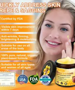 Endorsed by Dr. Sophia L Williams, a board-certified dermatologist with over 10 years of expertise in skincare, TTAILEDEN® Bee Venom Skin Restoration Cream comes highly recommended. This exceptional product provides an ideal remedy for an array of skin issues, including neck lines, sagging arms, drooping breasts, chest discomfort, stretch marks, cellulite on the abdomen, thighs, and buttocks, as well as sagging buttocks, among others. Importantly, it achieves these results without any adverse side effects. Crafted entirely from 100% natural plant extracts, this cream is suitable for all skin types, including sensitive skin.