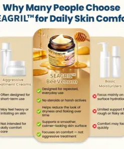 SEAGRIL™ BeeVenom Psoriasis Treatment Cream is formulated with a honey-derived comfort complex designed to support skin that feels dry, itchy, rough, or easily irritated.