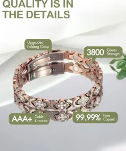3X Strength Magnetism: The copper bracelet is set with 3 rows of magnets (3800 Gauss each) for maximum effectiveness.