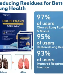 The YUNPSO™ DoubleNano COPD Relief Patch utilizes innovative natural therapy, with a focus on powerful ingredients like nano-quercetin and resveratrol. When applied, the patch’s advanced transdermal technology allows the active ingredients to penetrate deeply, providing immediate relief. It enhances blood circulation in the lungs, clears mucus and toxins, and helps open the airways, effectively supporting lung health and improving overall respiratory function.