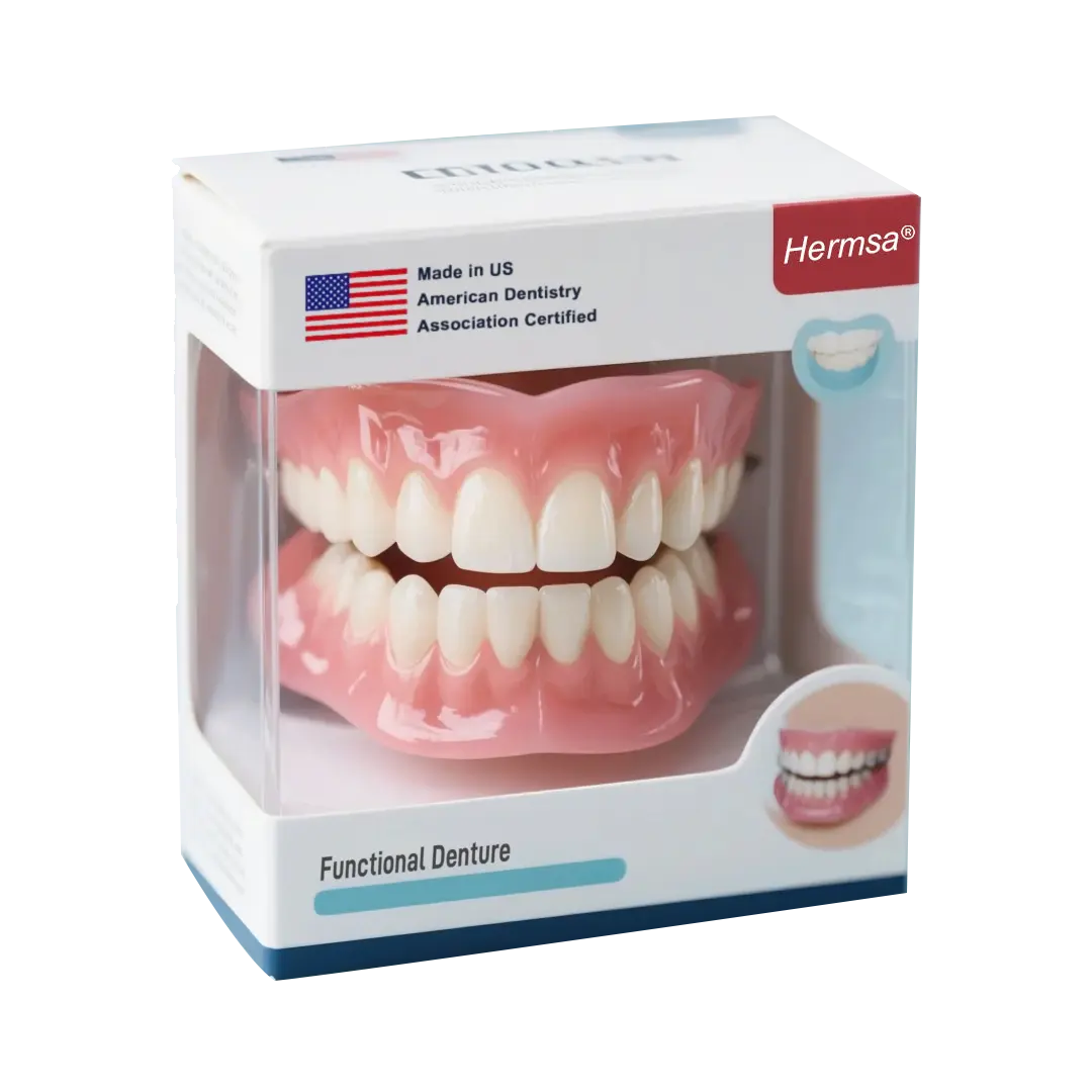Introducing Hermsa® Multi-Functional ThermoFlex Silicone Denture Set — the breakthrough in denture technology that solves all the frustrations and fears you’ve had about dentures. No more slipping, no more pain, and no more embarrassment. Just a smile that feels like yours again, and the confidence to take on the world.