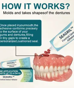 ✅ Waterproof and Mess-Free: Once set, the adhesive becomes completely waterproof and resistant to food particles, saliva, and heat. No sticky, pasty residue like gels or creams—SEAGRIL® keeps everything clean, fresh, and locked in place, even through hot meals and drinks.