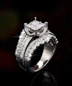 I have no words to describe my excitement over this ring! I’ve wanted a huge wedding ring forever! Pretty much my entire life! Who can afford to spend the kind of money it takes to buy a ring of this size though?! When I came across this I ordered it so quickly!!! I couldn’t believe the price! It’s absolutely stunning!!! In my opinion, it looks as close to real as you can get! The stones sparkle like you wouldn’t believe! So detailed too! I love it so much! I’m just in awe & so happy!!! I’ve been with my husband for 30 years! I feel so smart to not spend thousands on the real thing! What’s the point in going broke, when you can get the wow factor & spend under $23?! 😂🤷🏼♀️Fits perfectly! My fingers are a little swollen in the photos! But the size is true to size!One solid piece! 😍❤️Comes in a little velvety soft pouch!
