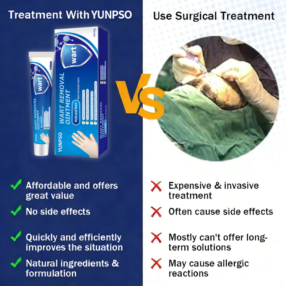 YUNPSO® Mole and Wart Removal Cream utilizes deep penetration technology to effectively remove moles and warts without leaving scars. Our product is based on natural ingredients, ensuring safety and painlessness, helping you restore smooth, healthy skin.