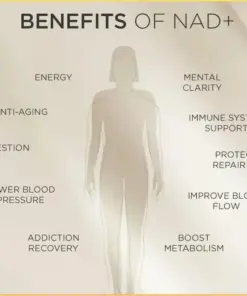 NAD+ energizes cells, supports repair, and enhances metabolism for improved vitality.