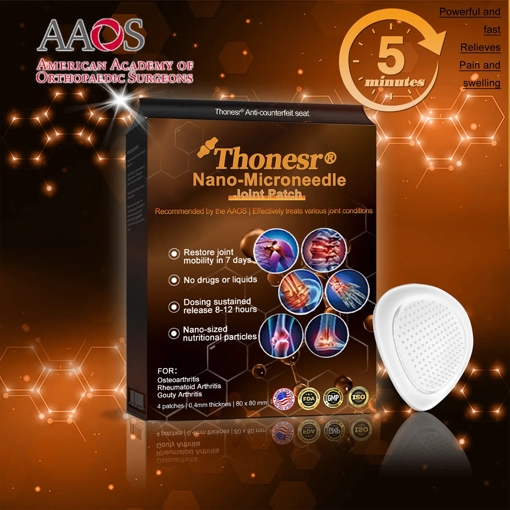 Thonesr® Nano-microneedle joint patch was developed by the American Academy of Orthopaedic Surgeons.
