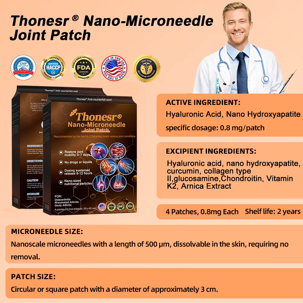 Clinically tested by orthopedic scientists, the Thonesr® Nano-microneedle joint patch can significantly improve arthritis and other orthopedic problems in just 7 days.