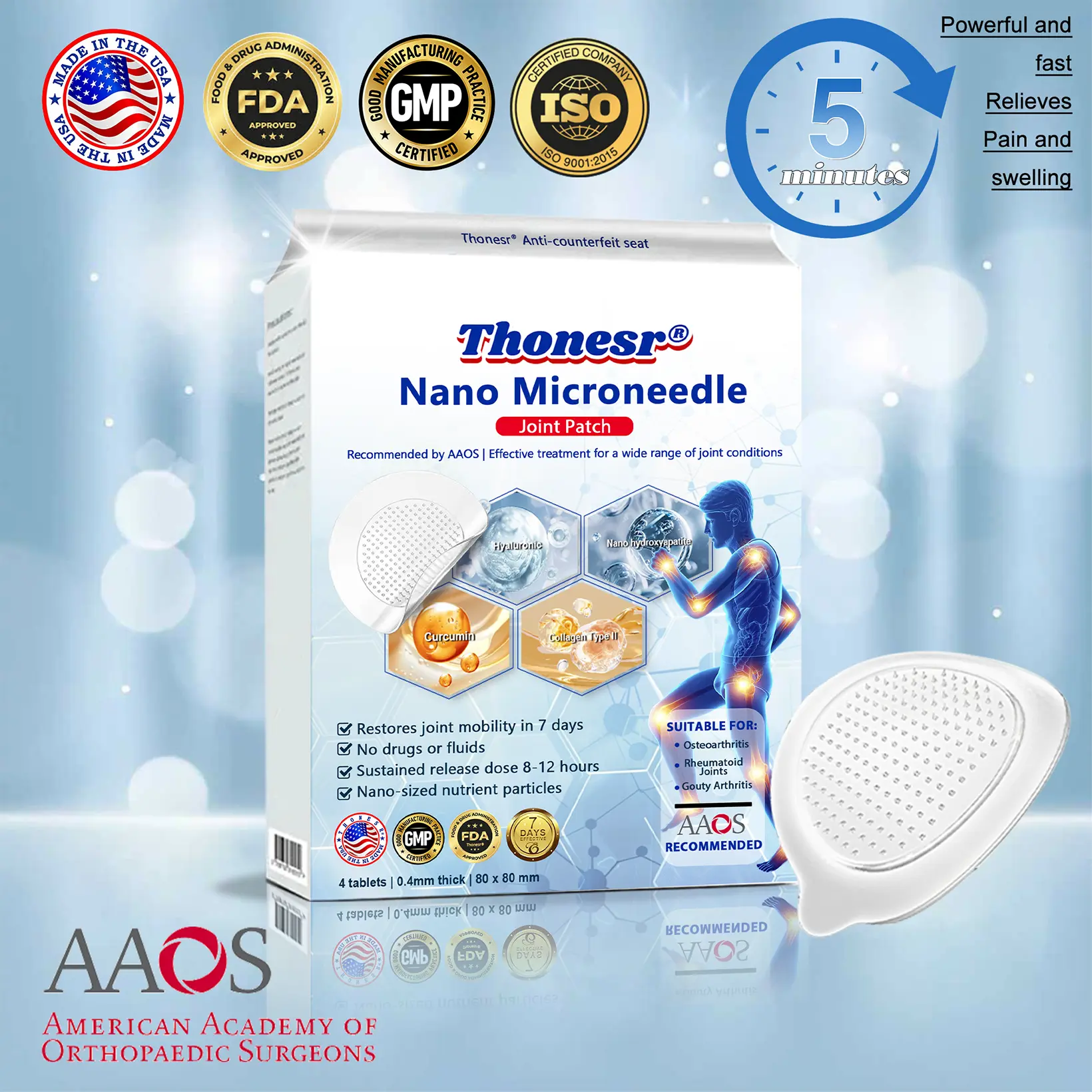 Thonesr® Nano-microneedle joint patch was developed by the American Academy of Orthopaedic Surgeons.