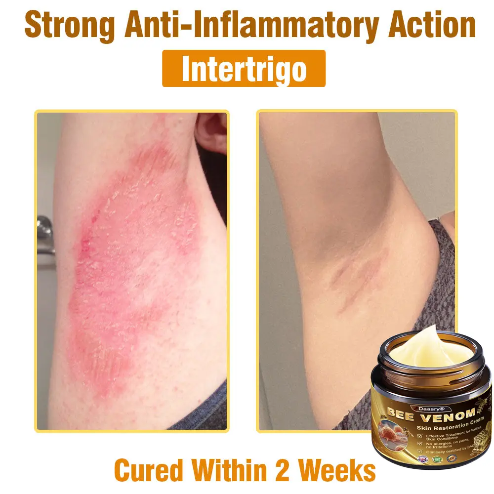 Bee venom is rich in bioactive compounds like melittin, apamin, and adolapin, which have been scientifically shown to reduce inflammation by inhibiting inflammatory pathways and improve blood circulation to affected areas, delivering nutrients vital for skin repair. Regular use of this cream can effectively soothe chronic skin conditions like eczema, psoriasis, and rosacea, promoting smoother, healthier skin naturally.