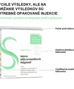 Nano Mikroneedlová náplasť obsahuje SMGT-GLP-1 v každej náplasti. Funguje tak, že napodobňuje účinok peptidu podobného glukagónu-1 (GLP-1), podporuje sekréciu inzulínu, inhibuje sekréciu glukagónu a oneskoruje vyprázdnenie žalúdka, čo pomáha kontrolovať hladinu cukru v krvi a podporuje chudnutie.