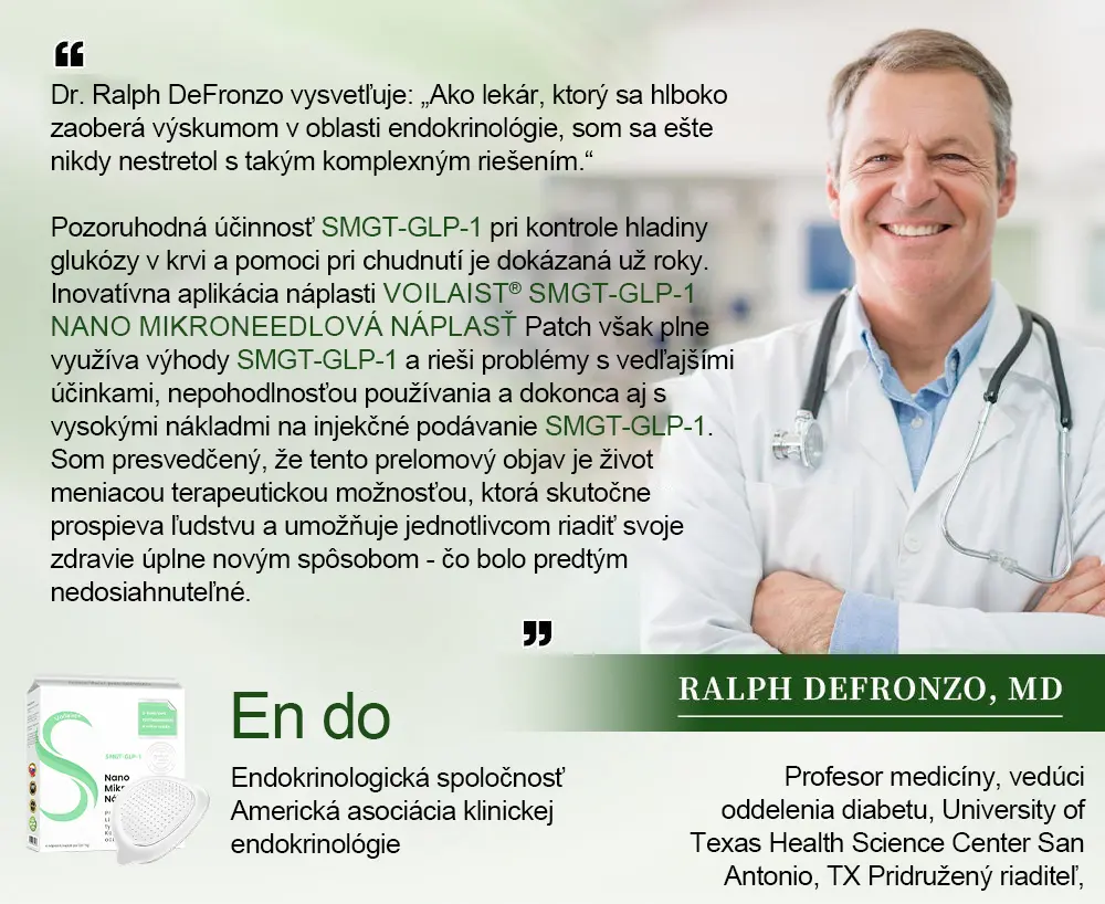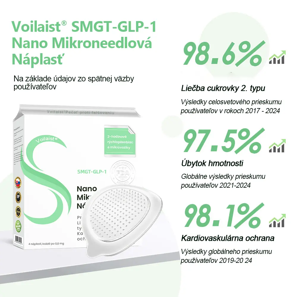 “Trpím obezitou aj cukrovkou a užívam SMGT-GLP-1 liečbu v nemocnici. Možno sa pýtate, prečo som náhle prešiel na používanie Voilaist® Mikroneedlová náplasti. SMGT-GLP-1, známy aj ako semaglutid, je určite skvelá liečba. Funguje veľmi rýchlo – len krátko po injekcii mi klesol apetít, schudol som rýchlo a moja hladina cukru v krvi sa znížila. Ale, ako všetci vieme, je ťažké zmeniť staré návyky. V dni, kedy som mal dostať injekciu, som si vždy našiel rôzne výhovorky, prečo ju vynechať, čo viedlo k neúspešným liečbam. Cena, hlad, časové konflikty alebo dokonca také jednoduché veci ako dážď vonku ma odradili od toho, aby som išiel. Ale Mikroneedlová náplasť je perfektná pre niekoho ako ja, kto má problém s lenivosťou. Môžem ju ľahko používať doma a účinky trvajú, čo mi pomáha kontrolovať apetít. Ešte lepšie je, že je to naozaj cenovo dostupné a každý môže používať SMGT-GLP-1 na pomoc pri chudnutí a udržiavaní stabilnej hladiny cukru v krvi!”