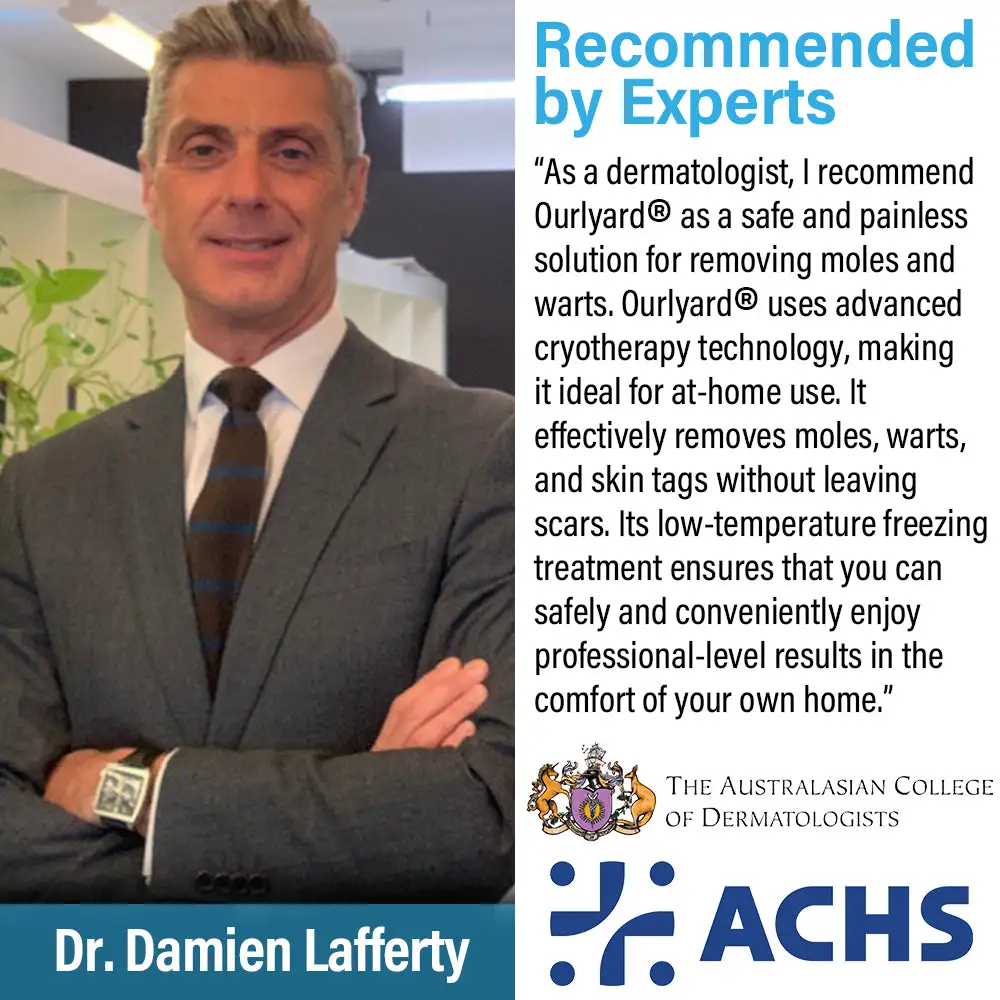 This product is certified and recommended by the Australian Dermatology Association (ADA), meeting their high standards for effectively addressing skin concerns and promoting overall skin health. Trusted by dermatologists, clinical studies show that it can visibly improve warts and skin lesions within one week, with most wart tissue and damaged skin healing within two weeks.Choose Ourlyard® TagRecede Cryo Treatment Spray — a non-invasive, easy-to-use solution for wart removal and skin repair. Enjoy a safe, effective, and reliable skincare experience right at home.